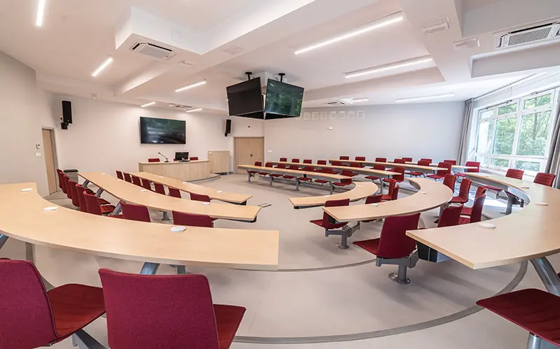 Особое внимание уделяется современным методам обучения, практике и стажировкам, международным обменам и карьерной поддержке студентов. Кампус расположен недалеко от центра Варшавы и сочетает учебные аудитории, библиотеку, зоны отдыха и инфраструктуру для иностранцев.